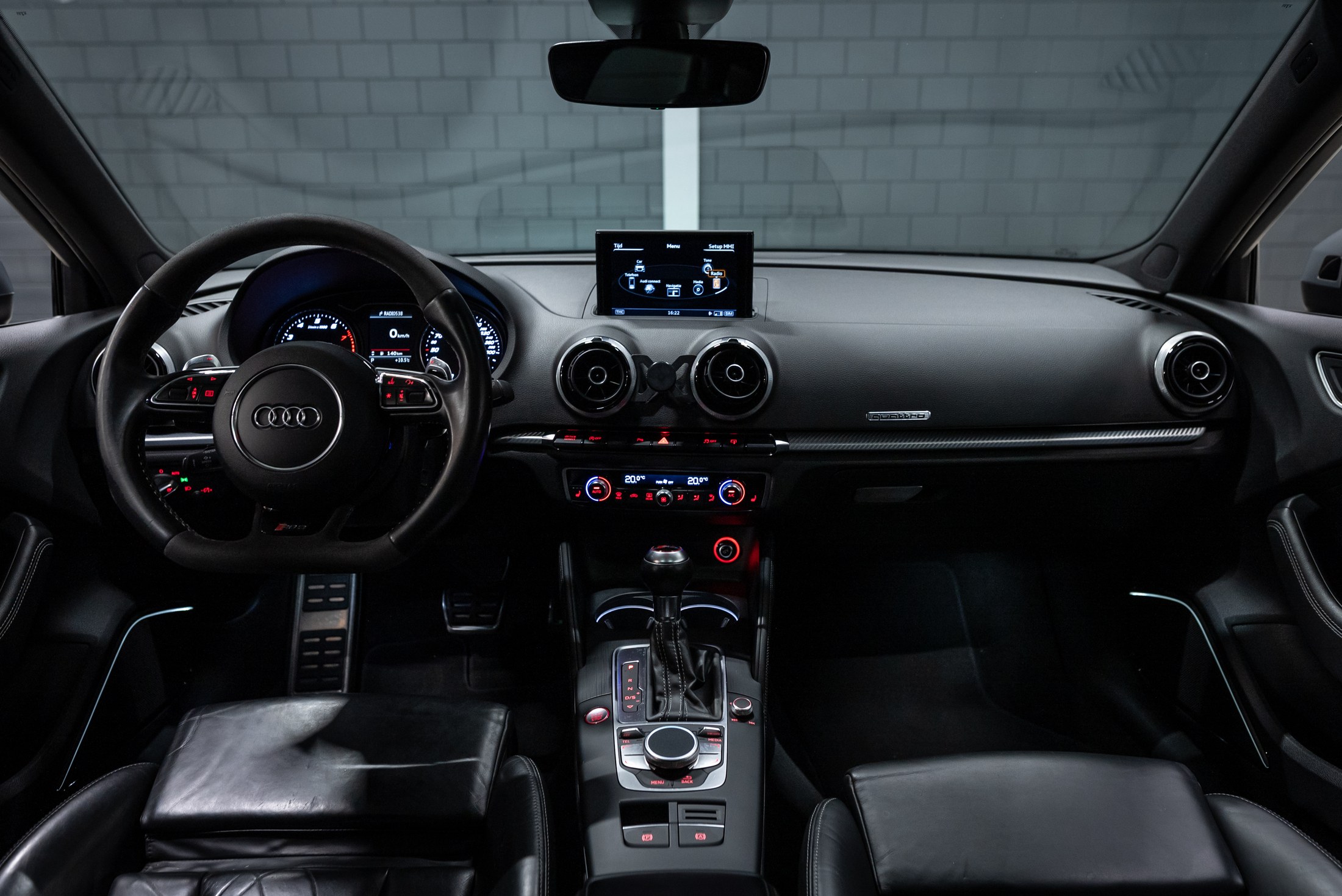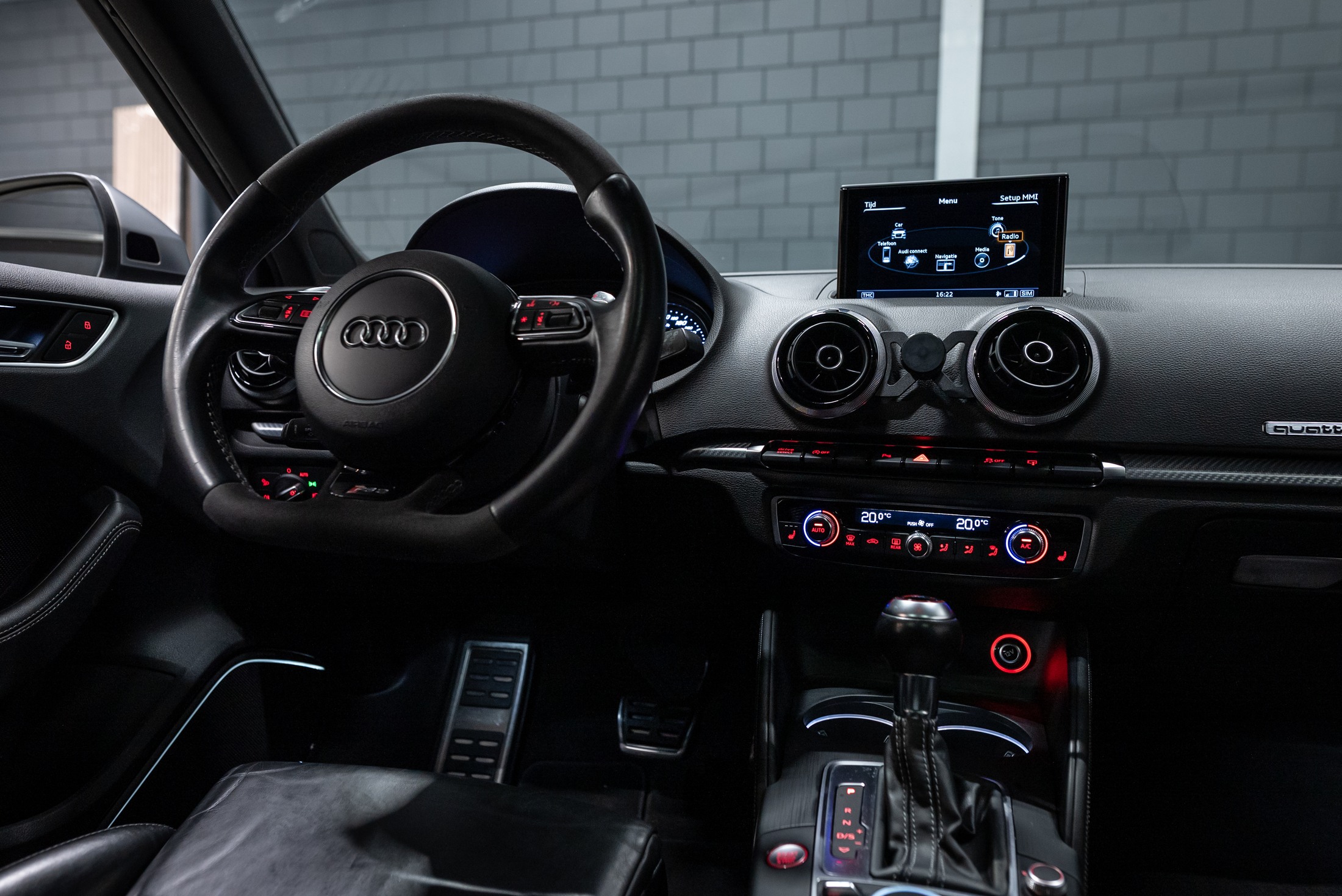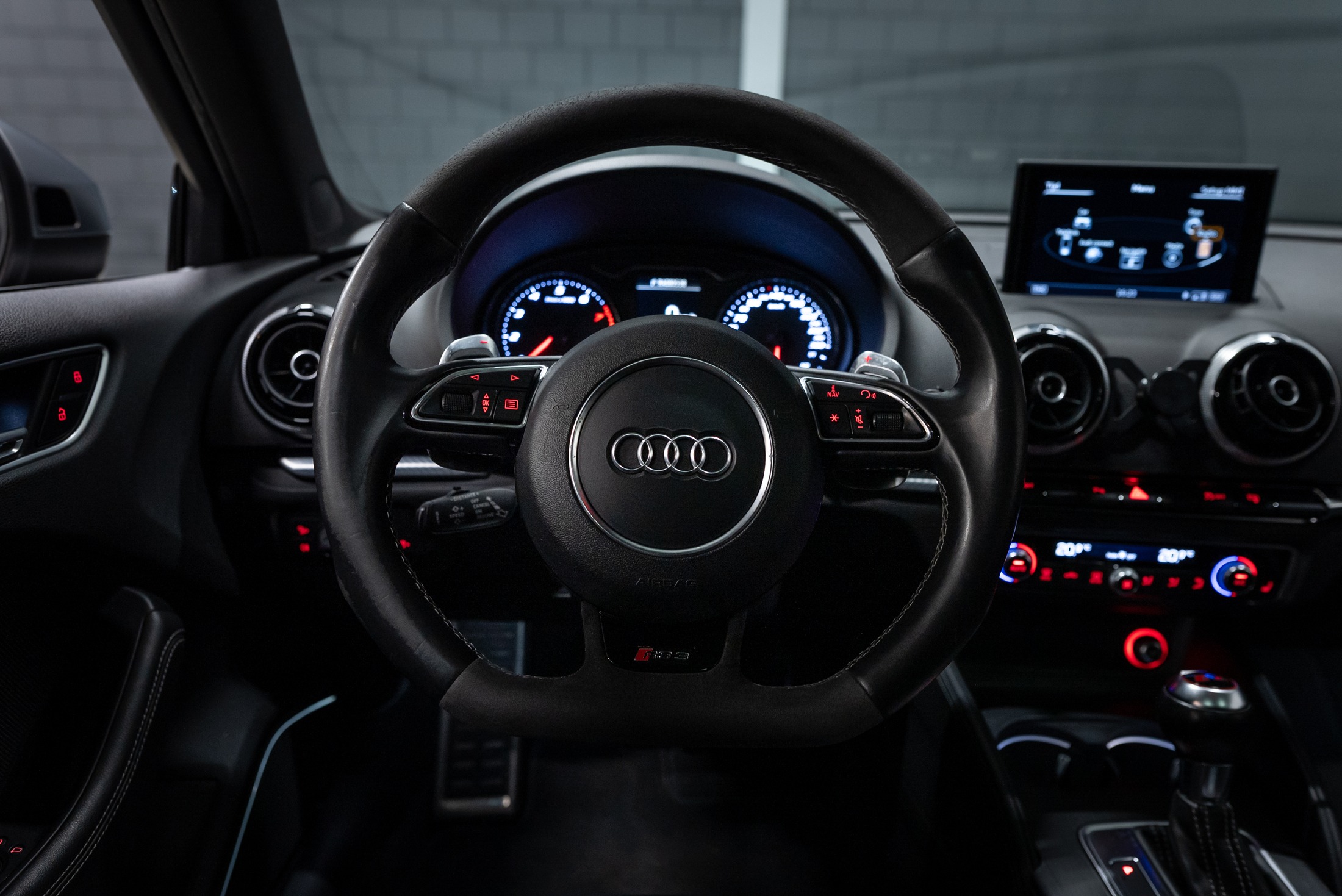 Mooie frisse Audi RS3. Exterieur: Mythezwart metallic Interieur: zwart-zwart-rotsgrijs Uitrustinglijst optioneel 39804 Achteruitrijcamera KA2 25047 Audi connect (Op internet gebaseerde diensten) EL3 24985 Audi music interface UE7 22202 Beglazing achter verduisterd (Privacybeglazing) VW1 37901 Binnenspiegel met Dimautomaat > 18909 - Licht- en regensensor > 22506 - Voorruit met Bandfilter boven 4L6 24835 Bluetooth-handsfree-installatie met Spraakherkenning (Audi Phone Box) 9ZE 15210 Buitenspiegel electr. verstelbaar, verwarmbaar en inklapbaar, met Dimautomaat en Stoeprandfunctie > 15107 - Buitenspiegel electr. verstelbaar, beide > 18211 - Knipperlichten LED in Buitenspiegel geïntegreerd > 19305 - Ruitensproeistukken en Buitenspiegel verwarmd > 15897 - Buitenspiegel met Stoeprandfunctie, rechts 6XK 42607 Chassis met Demperregeling (Magnetic Ride) 2H7 16203 Dakreling (Aluminium) 3S3 33901 Doorlaadopening (Middenarmsteun achter) 3NU 39806 Frontcamera (Ruit) QK1 4313 Hulppakket incl. Audi pre sense plus > 18610 - Rijassistent-systeem Grootlichtassistent > 18909 - Licht- en regensensor > 41150 - Rijassistent-systeem Automatische afstandsregeling (Adaptive Cruise Control) incl. Audi pre sense front > 42919 - Rijassistent-systeem Rijbaanassistentie (active lane assist) PCE 26276 Interieurinrichting: Decordelen Aluminium Race 5MD 31223 Interieurinrichting: Uitgebreide uitrusting mono.pur 7HE 33401 Lendensteun voor, electr. verstelbaar 7P1 1702 Licht-pakket QQ4 50187 Lichtmetalen velgen voor/achter: 8,5x19 / 8x19 (5-arm, Rotor, zwart) U65 25713 Multimedia-interface MMI Navigation Plus met MMI Touch > 24985 - Audi music interface > 25037 - Universele interface Bluetooth 7UG 1817 Optiek-pakket Aluminium mat 4ZL 17214 Panorama-klapdak elektrisch 3FB 24109 Radio-ontvangst digitaal (DAB) QV3 40591 Remzadels Rood gespoten 1LH 41150 Rijassistent-systeem Automatische afstandsregeling (Adaptive Cruise Control) incl. Audi pre sense front 6K4 37209 Rijassistent-systeem Beschermingssysteem voor inzittenden (Audi pre sense basic) 7W1 18610 Rijassistent-systeem Grootlichtassistent 8G1 42919 Rijassistent-systeem Rijbaanassistentie (active lane assist) 40906 Rijassistent-systeem Starthulp (hold assist) UH2 31898 RS-Sportstoelen voor > 33401 - Lendensteun voor, electr. verstelbaar PS6 35508 Sluit-/startsysteem Advanced Key (Comfort-sleutel) 4F2 24621 Sound-systeem Bang & Olufsen 9VS 77103 Sport-uitlaatsysteem 0P6 30225 Stoelbekleding/kussens: Leer Fijne nappa, Ruitenstiksel met Logo-afdruk in Voorstoelleuningen N1H 29500 Stoelverwarming voor 4A3 25037 Universele interface Bluetooth 22506 Voorruit met Bandfilter boven 4GH 26906 Zij-airbag achter 4X4 Standaard uitrusting 70420 Aandrijvingstype: Vierwielaandrijving > 70401 - Aandrijvingstype: Vierwielaandrijving permanent 1X1 33508 Achterbankleuning gedeeld/klapbaar 3NU 18802 Achterlichten LED 8SK 25906 Bandencontrole-indicator 7K1 68802 Bandenreparatieset 1G8 25809 Bestuurders-informatiesysteem (FIS) met kleurendisplay 9S6 15899 Buitenspiegel Aluminium-look mat 6FT 15804 Buitenspiegel asferisch, links 5SL 15702 Buitenspiegel convex, rechts 5RU 10004 Carrosserie: 4-deurs 0A2 28809 Comfort-airco-automaat 2 zones 9AK 27805 Dakbekleding Stof, zwart 6NJ 38005 Diefstalalarmsysteem + Interieurbeveiliging / Sleepbeveiliging 7AL 70308 Elektron. stabiliteitsprogramma (ESP) 1AZ 77227 Emissie-arm volgens emissienorm Euro 6 7MM 26901 Hoofdairbag-systeem (Sideguard) 4X4 31007 Interieurinrichting: Aluminium-look QJ1 39307 Isofix-houder voor Kinderzitje 3B4 18020 Koplamp LED 8IT 18909 Licht- en regensensor 8N6 27204 Middenarmsteun voor met Vak 6E3 91030 Motor 2,5 L - 270 kW 20V TFSI Katalysator (CZGB) CZGB 504 Onderhoud: Longlife-Service QG1 1202 Opberg- en bagageruimte-pakket QE1 25797 Parkeerhulp voor en achter, akoestisch en optisch met selectieve indicatie (APS Plus) 7X2 26601 Pedalen en Voetsteun in Roestvrij staal VF1 39205 Schakel-/selectiehefboomgreep Leer 7F9 77601 Start-/stopsysteem 7L6 69018 Stuur (Sport/leder - 3-spaaks, afgeplat aan de onderzijde) met Multifunctie en Schakelfunctie 2PK 74904 Transmissie 7 versnellingen - Dubbelkoppeltransmissie S-tronic G1D 28409 Vloermatten Velours 0TD